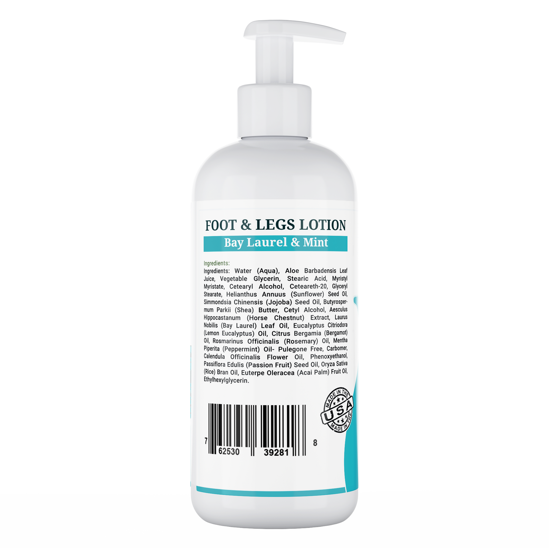 Ingredients: Water (Aqua), Aloe Barbadensis Leaf Juice, Vegetable Glycerin, Stearic Acid, Myristyl Myristate, Cetearyl Alcohol, Ceteareth-20, Glyceryl Stearate, Helianthus Annuus (Sunflower) Seed Oil, Simmondsia Chinensis (Jojoba) Seed Oil, Butyrospermum Parkii (Shea) Butter, Cetyl Alcohol, Aesculus Hippocastanum (Horse Chestnut) Extract, Laurus Nobilis (Bay Laurel) Leaf Oil, Eucalyptus Citriodora (Lemon Eucalyptus) Oil, Citrus Bergamia (Bergamot) Oil, Rosmarinus Officinalis (Rosemary) Oil, Mentha Piperita (Peppermint) Oil- Pulegone Free, Carbomer, Calendula Officinalis Flower Oil, Phenoxyethanol, Passiflora Edulis (Passion Fruit) Seed Oil, Oryza Sativa (Rice) Bran Oil, Euterpe Oleracea (Acai Palm) Fruit Oil, Ethylhexylglycerin.