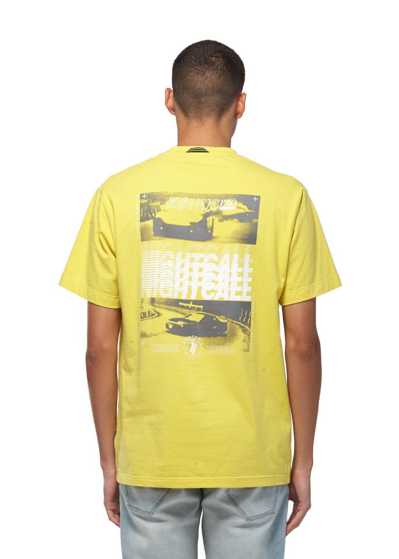 Cotton jersey short sleeve crewneck tee with screen print on chest and back