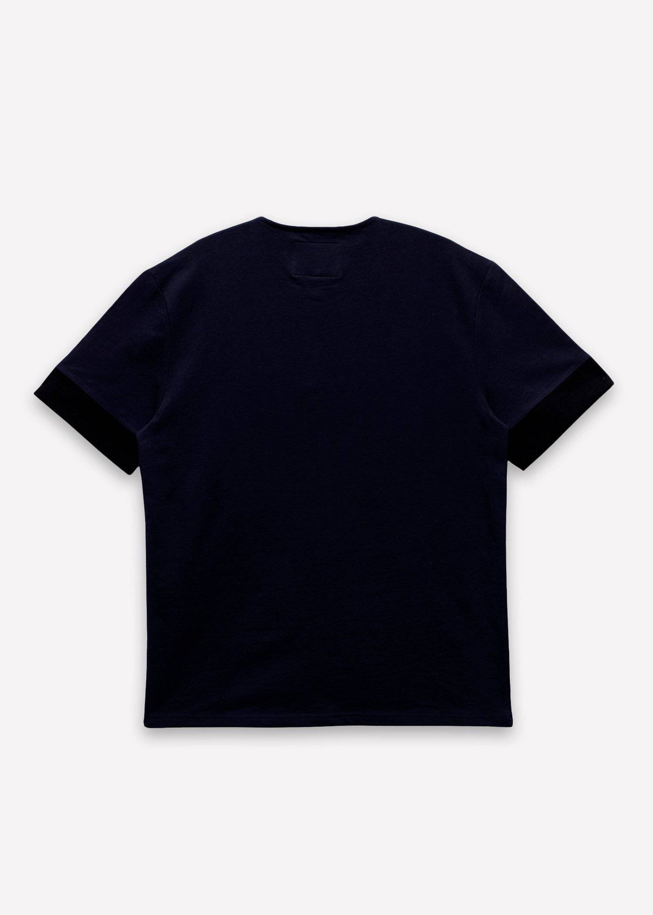 Short sleeve henley with chest pocket with seam detail and contrast color cuffs